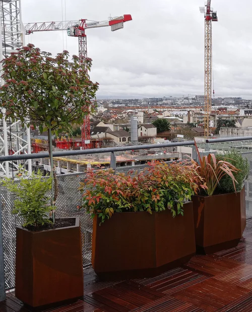 Flexibilité et intégration : Les arbres peuvent être intégrés dans des meubles existants ou personnalisés (bar, banc, table) et fixés directement au sol via une plaque métallique, ou bien livrés pour être installés dans une jardinière.